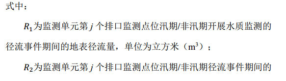 在 1 個自然年當(dāng)中,排口監(jiān)測點位產(chǎn)流事件期間的地表徑流量按照公式(1)計算。