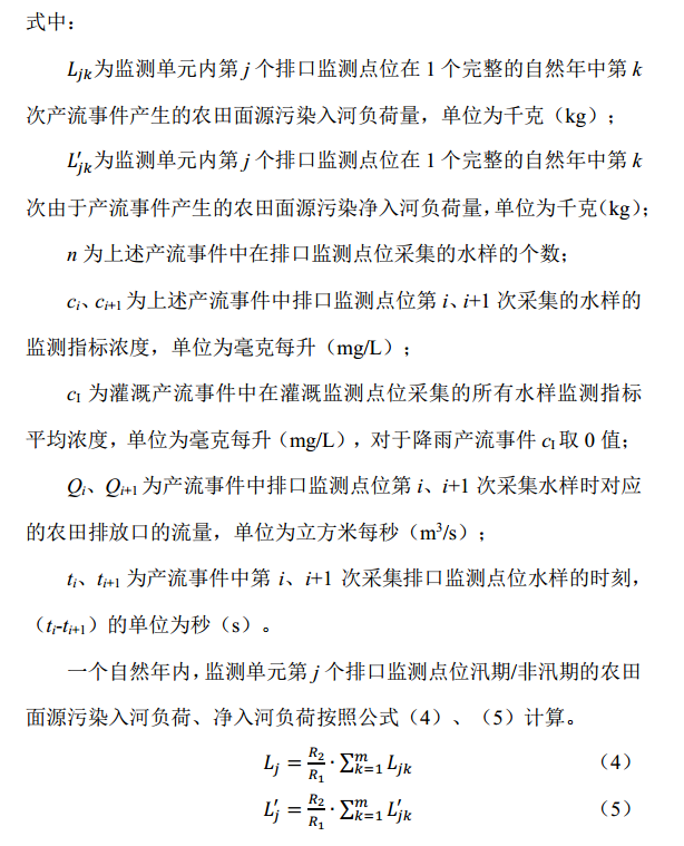 ?監(jiān)測周期應(yīng)包含至少 1 個完整的自然年。流量監(jiān)測應(yīng)覆蓋整個監(jiān)測周期;水質(zhì)監(jiān)測應(yīng)針對農(nóng)田排放口的降雨和灌溉產(chǎn)流事件進(jìn)行,汛期(每年 5 月至 9 月)適當(dāng)增加降雨產(chǎn)流事件監(jiān)測頻次,水田的灌溉高峰期適當(dāng)增加灌溉產(chǎn)流事件監(jiān)測頻次。