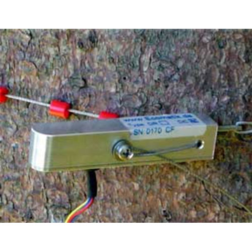 DC1是測量植物周長變化的簡單版本。傳感器通過一個由熱膨脹系數(shù)低的合金制成的鋼絲繩固定在樹上。用小塑料環(huán)減少鋼絲繩對樹的壓力,并減少摩擦阻力,大大提高靈敏度。