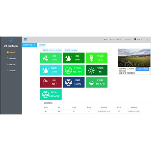 ? 實(shí)時(shí)監(jiān)測(cè)風(fēng)速、風(fēng)向、雨量、溫度、濕度、氣壓、太陽(yáng)輻射、土壤溫度、土壤濕度等要素參數(shù)