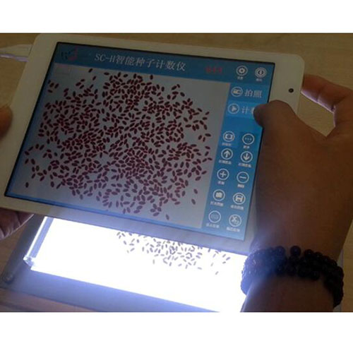 概述:SC-H2型智能種子數(shù)粒儀由平板電腦、智能種子數(shù)粒軟件、背光裝置組成。主要用在農(nóng)業(yè)上對作物快速測產(chǎn)、考種等場合,以有效替代人工數(shù)?;驒C械式自動數(shù)粒。?功能特點:1、由≥7寸平板電腦拍照種粒,軟件便自動計數(shù)和輸出種子數(shù)量。2、由添加、刪除的個別指點修正,可使數(shù)粒達100%準確率。3、可查看結(jié)果表、導出至EXCEL,以及向指定接收方上傳數(shù)據(jù)。4、高亮LED燈背光裝置使種粒識別更穩(wěn)定,可