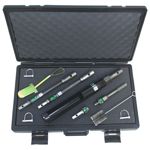 套件包含 | 63310 – (1) SDS Max 電鉆鏈接六角快速銷公頭適配器 58508 - (1) 1-1/4英寸(3.17厘米) 7 號外螺紋鏈接至六角快速銷母頭適配器 58509 - (2) 1英尺(30.48厘米) 延長桿 10142 - (1) 2-3/8英寸(6.0325厘米) 圓形土芯鉆頭,帶硬質(zhì)合金齒 430.17 - (1) 2x 12英寸(直徑5.08 x 長度30.48厘米) 不銹鋼刷 55647 - (1) 鏟土勺 12768 - (4) 卡扣銷 3/8 X 1-3/4英寸(直徑0.9525 X長度4.445厘米)(1-1/2英寸(3.81厘米)可用) 424.62 - (1) 小型手提箱 |